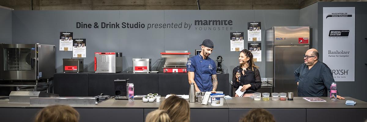 Jasmin Angehrn – Teammitglied der Swiss Culinary Creators, der exklusiven Gastrofacts Kochcrew, und Inhaberin des Landgasthofs zur alten Herberge in Niederbüren – präsentiert im Gastrofacts Drink & Dine Studio, wie Tee-Aromen als edle Geschmacksträger die moderne Dessertkunst verfeinern.
