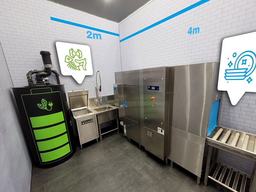 Mit dem MEIKO BioMaster® Pumpsystem werden Küchenabfälle und Speisereste direkt in der Eingabestation in flüssige Biomasse umgewandelt. Über Kunststoffleitungen wird die Biomasse im geschlossenen Kreislauf in einen Sammelbehälter gepumpt. Je nach Betriebsgrösse ist die Kombination mit einem Fettabscheider vorgeschrieben.